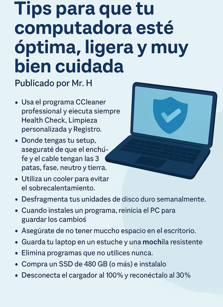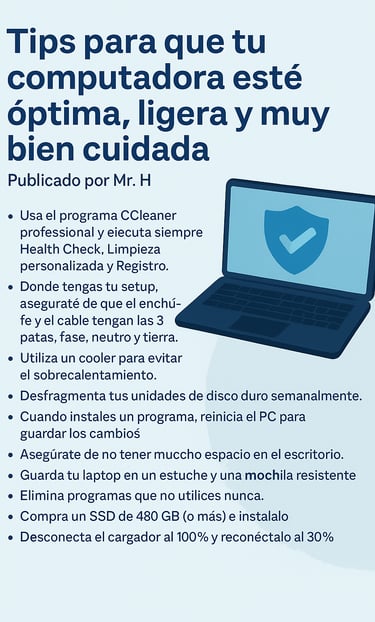 Tips para que tu computadora esté óptima, ligera y muy bien cuidada.